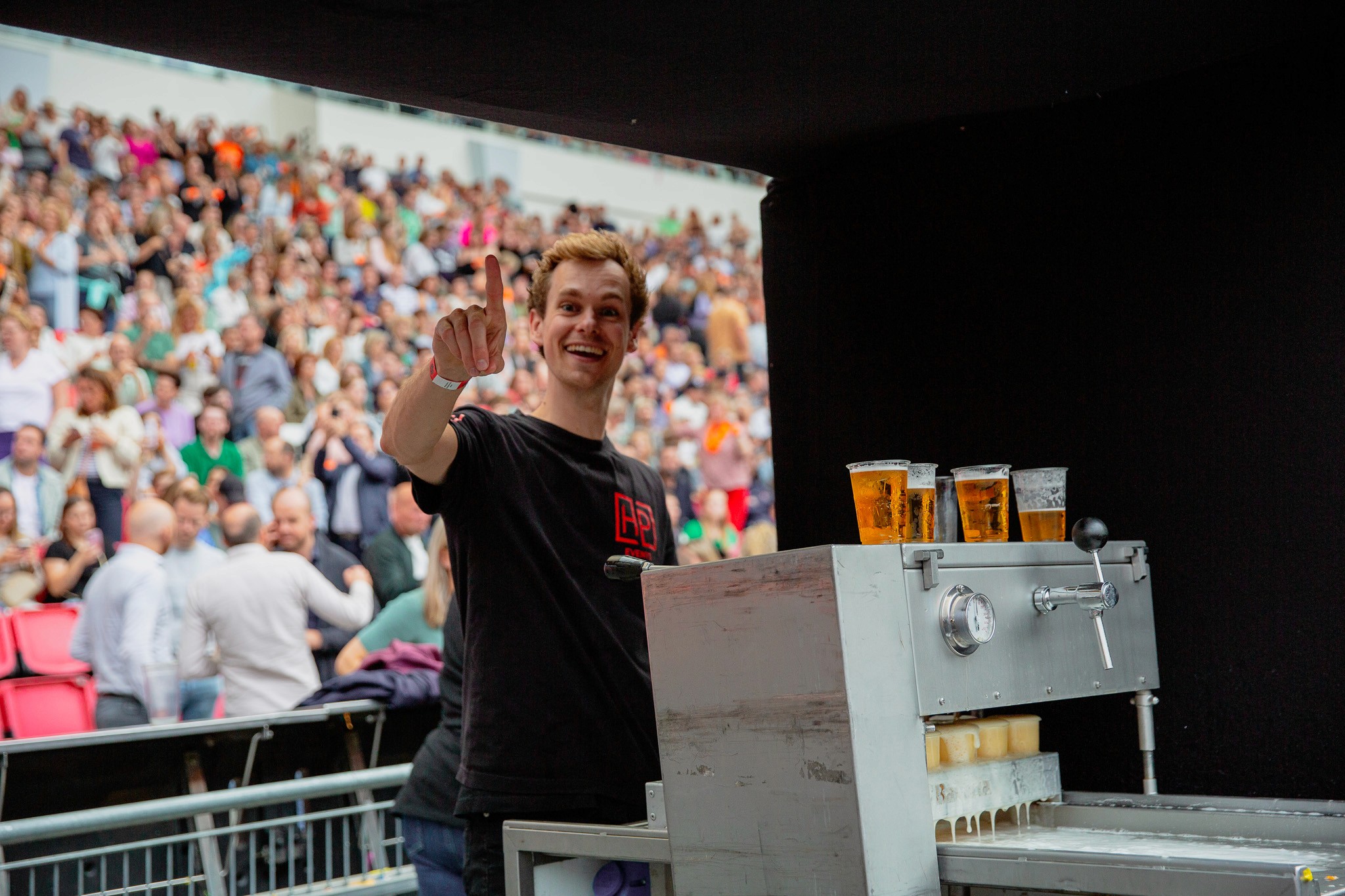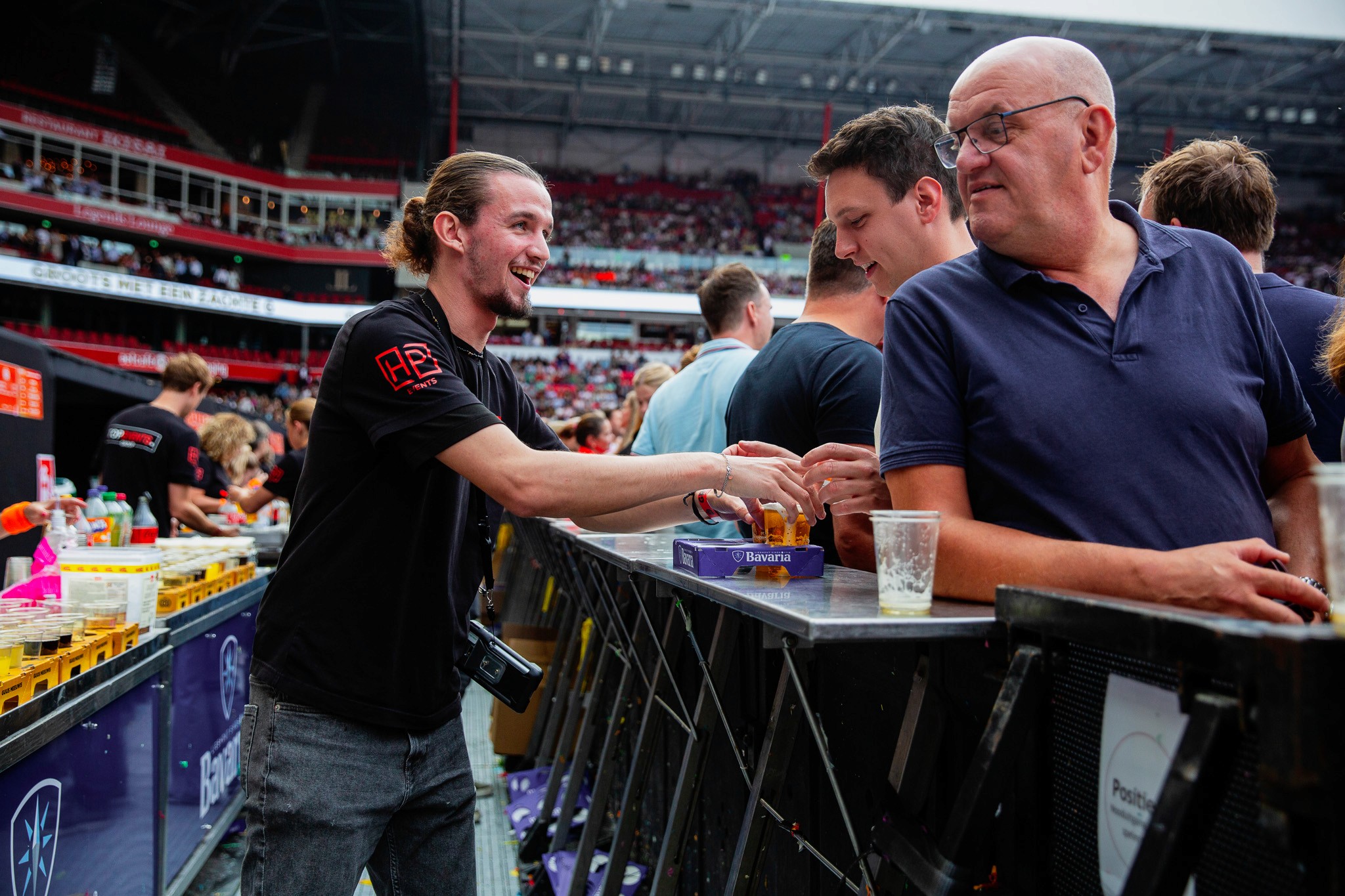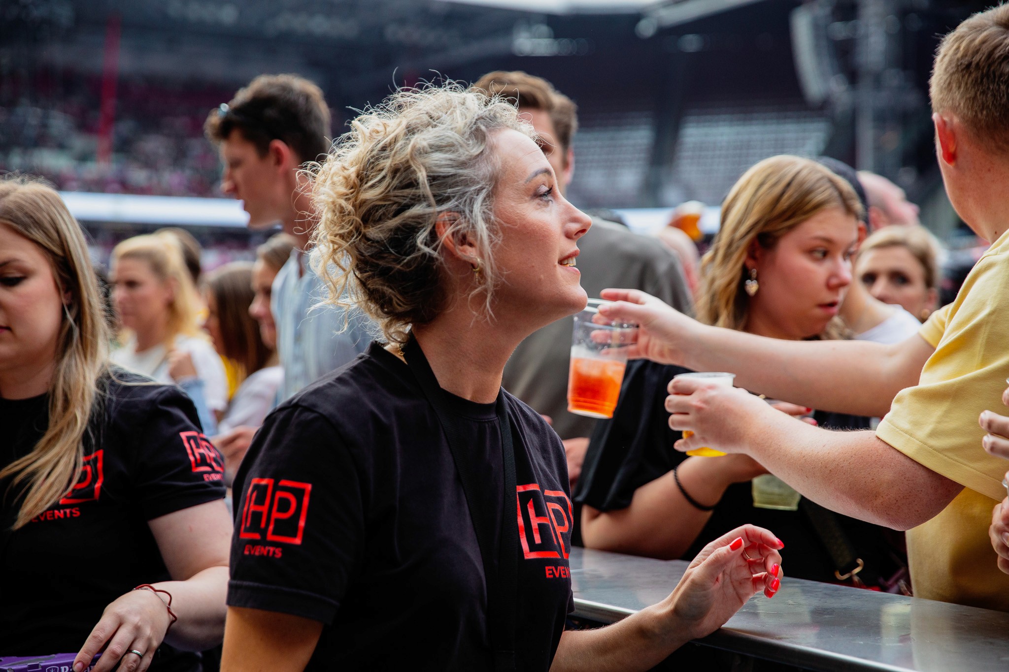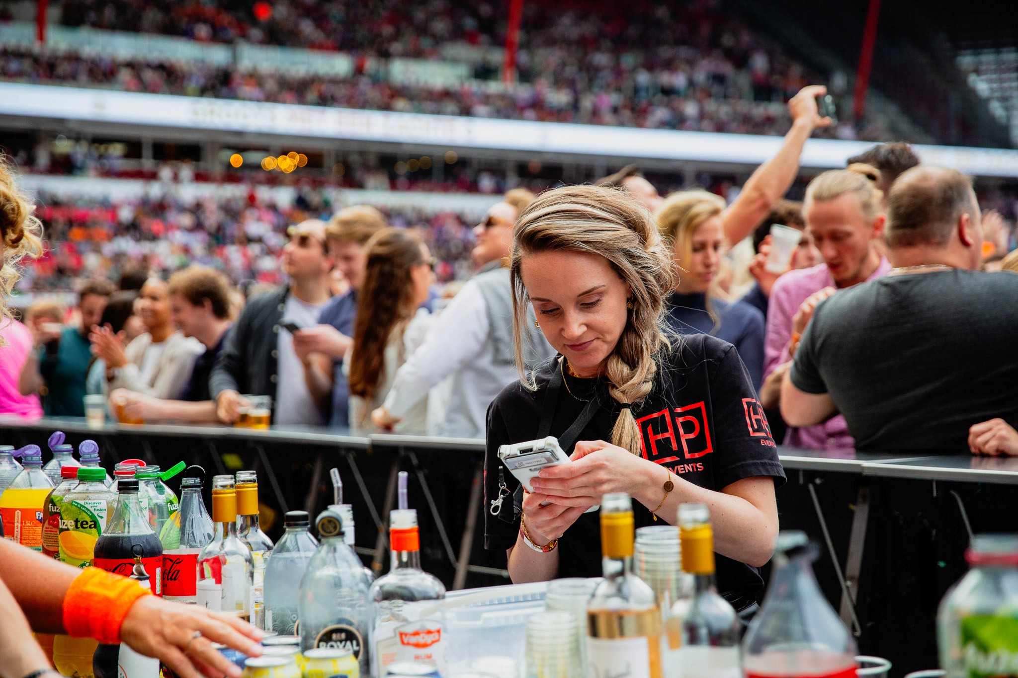 Sfeervolle, energieke beelden van het barpersoneel tijdens een van de evenementen die HP-Event verzorgt. De fotografie legt niet alleen de gezelligheid vast, maar ook de inzet en het teamwork achter de schermen, waardoor de sfeer van het evenement écht tot leven komt.